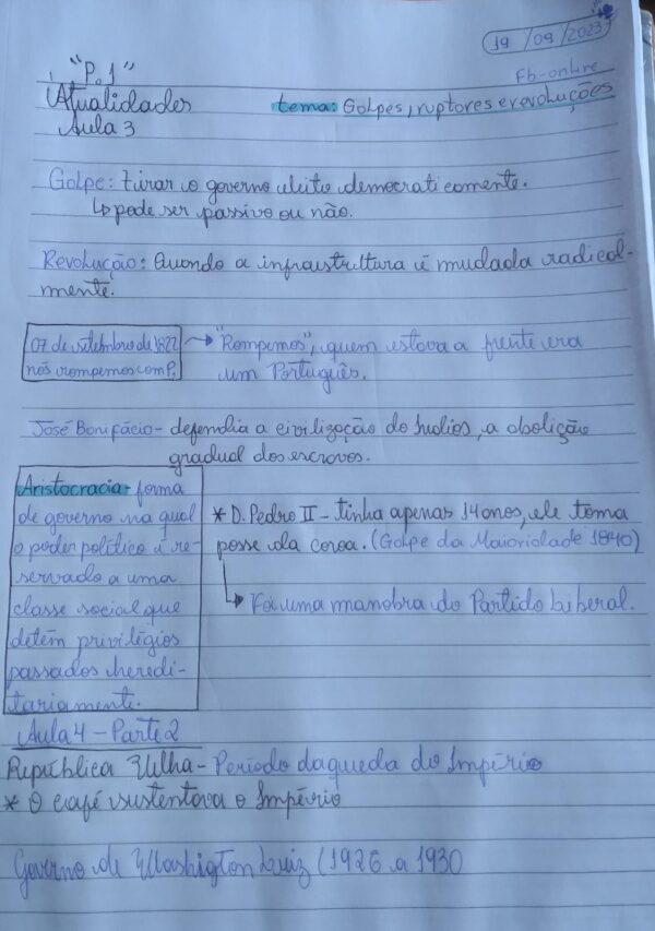 Um resumo sobre golpe, revolução ou ruptura. Resumo sobre o que é Aristocracia.